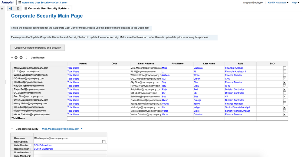 - This primary dashboard in the downstream Automated User Security via Cost Center model - with one click, update your cost center hierarchy and user security all at once.