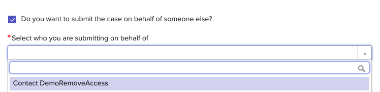 By choosing the option of submitting a case on behalf of someone else, you can select other registered contacts in your portal. This will make them the owner of the case.